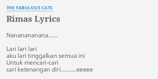 Lari3x aku lari tinggalkan semua ini untuk mencari- cari2x ketenangan diri. Lirik Lagu Rimas The Fabulous Cat. Menarik dari segi lirik lagu dan juga rentaknya.